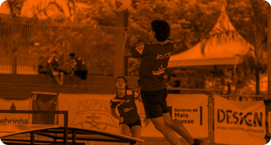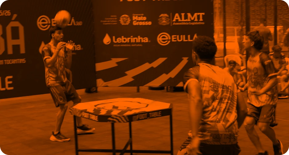 Esporte dinâmico praticado em mesa oficial, combinando técnica de futebol com precisão. Disputado em simples, duplas e equipes.